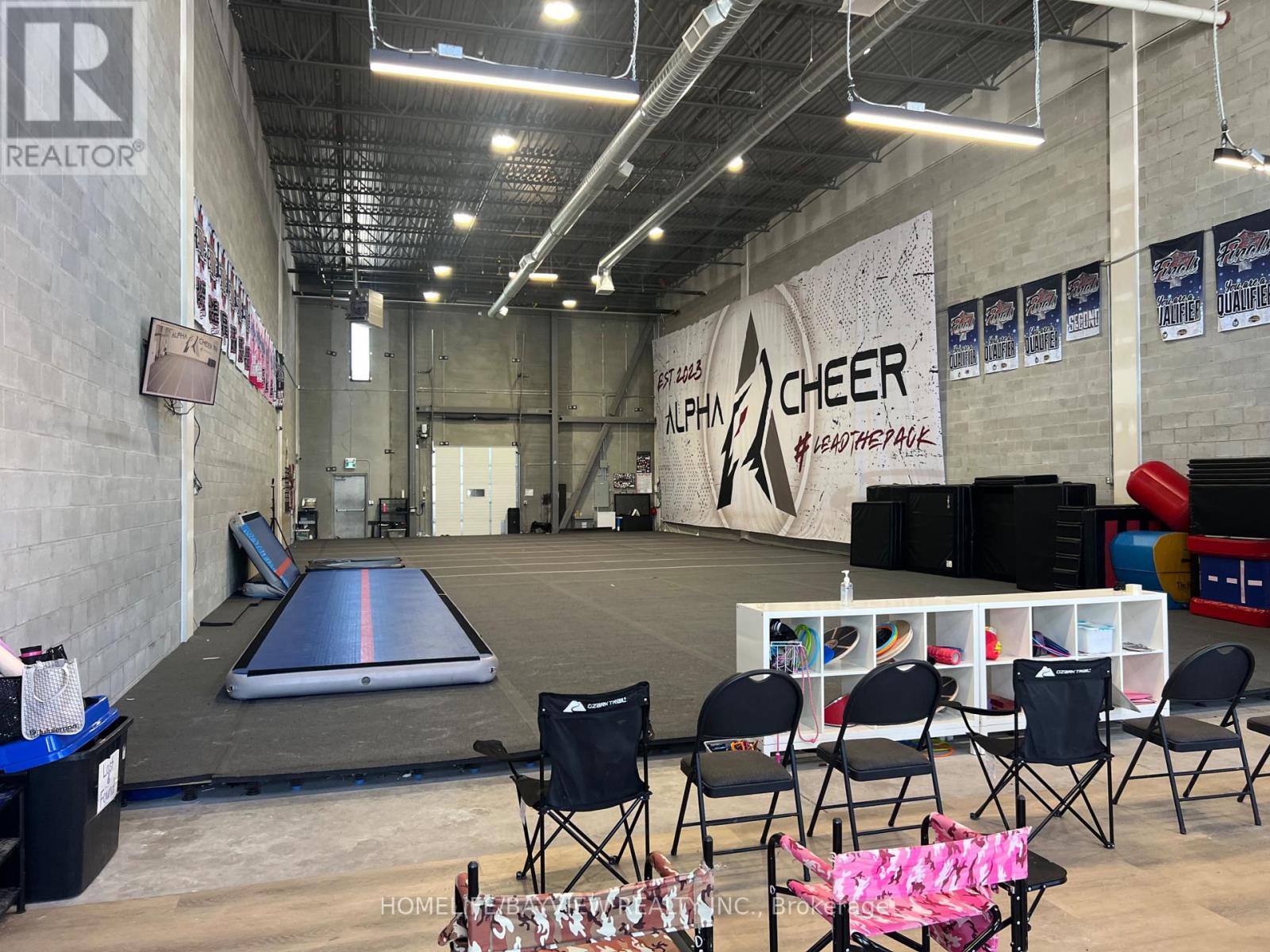 Newer industrial unit at prime location with many permitted uses. 24 foot clear height with truck level dock door and dock leveler. Fits 53 foot trucks at rear. Ideal for warehouse, manufacturing, machine shop, recreation, pickle ball, etc. Don't miss this one. Excellent location very close to Hwy 404, transit, restaurants, & shopping. Very large windows providing lots of natural light. Currently leased from June 1, 2024 for 3 years + 3 Years option at $23/SF with $1 escalation per year. Buyer to assume tenant (cheerleading academy) & mortgage. (id:2469)