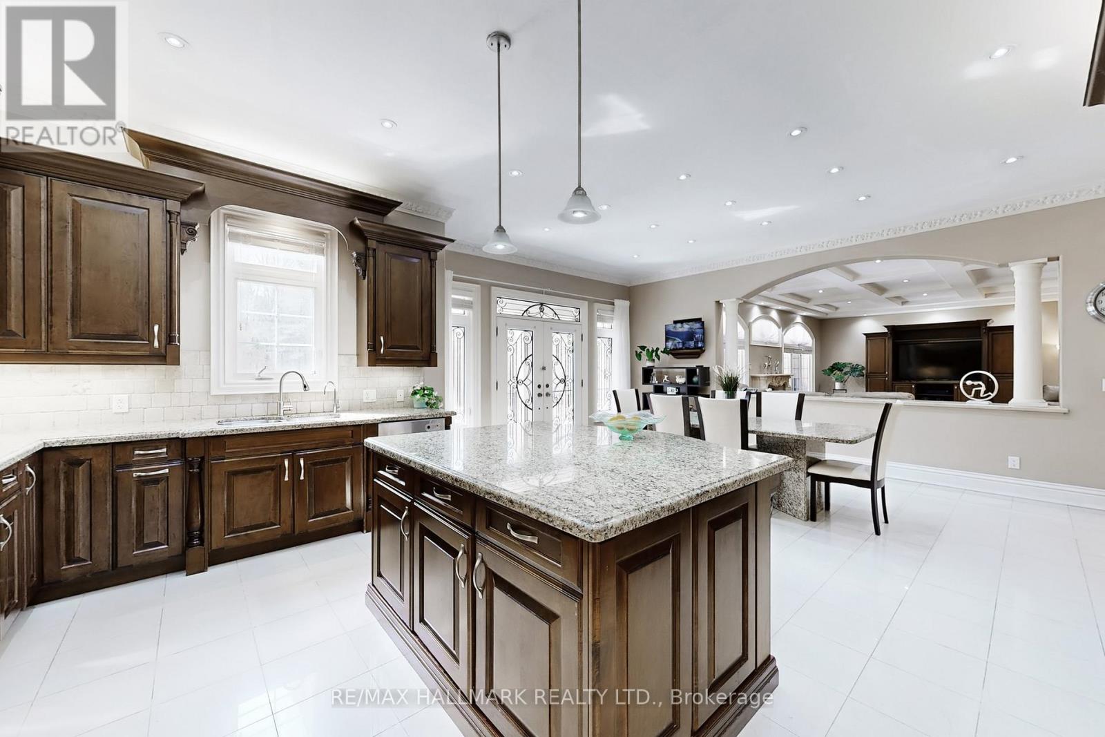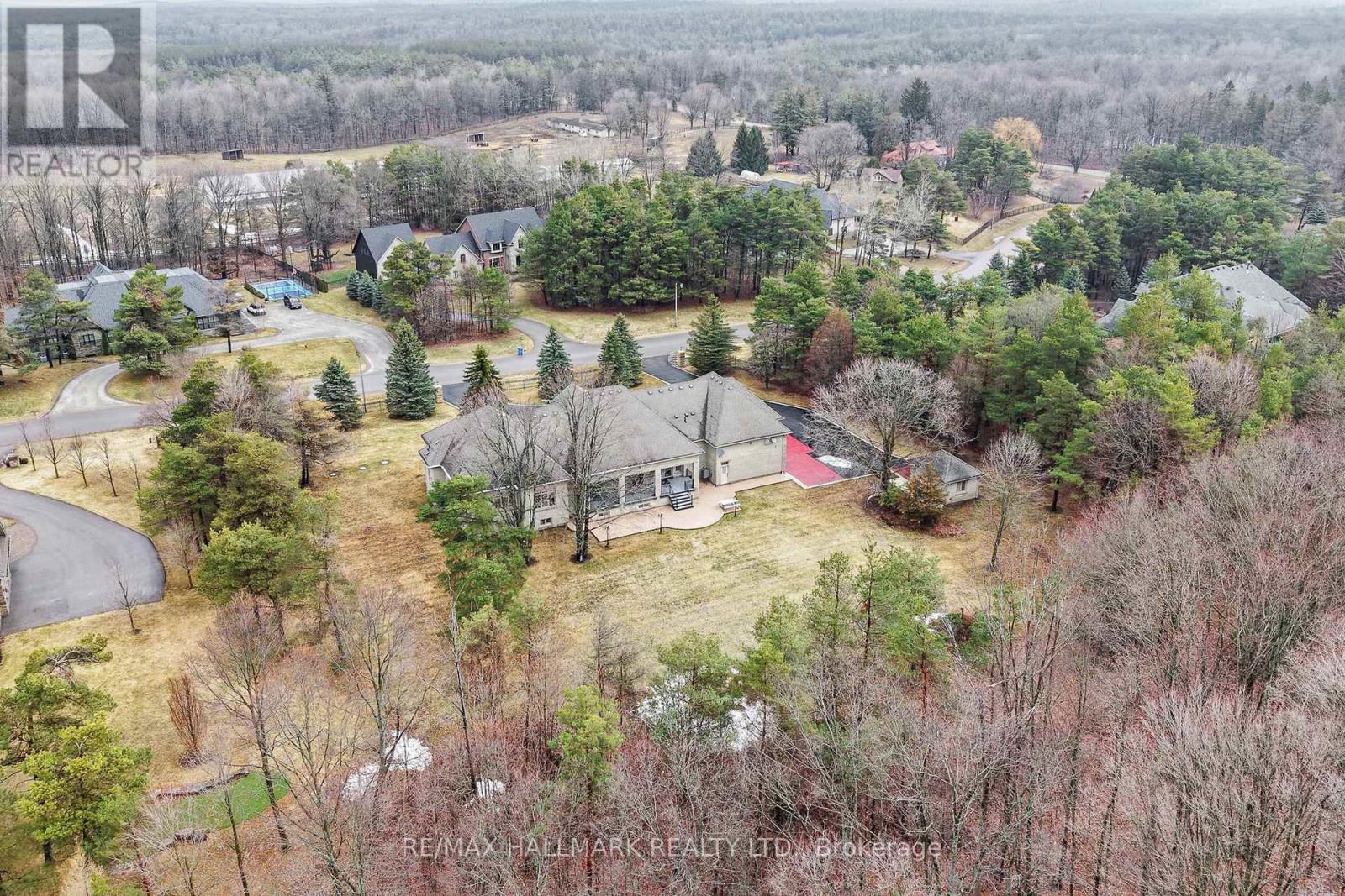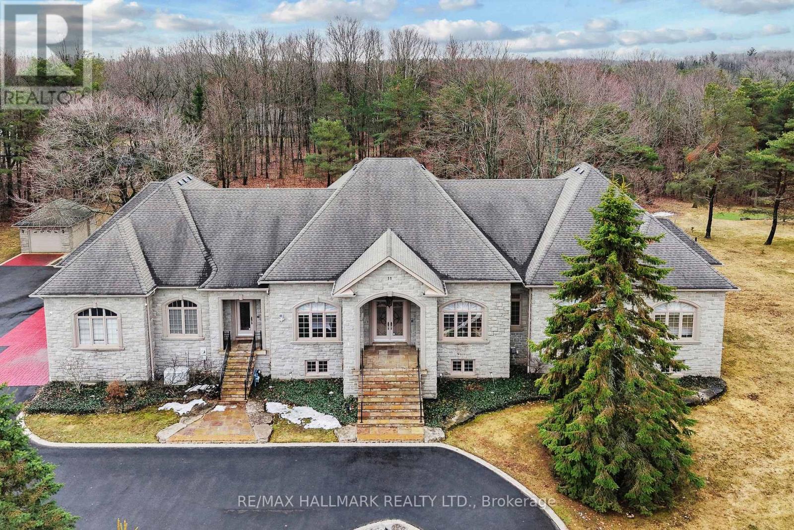 A Rare Custom Built Bungalow Offering Over 8,000 Sqft of Finished Living Space On An Exceptional 1.8 Acre Court Lot With 241 Ft of Frontage!Privately set behind mature evergreens, this impressive home showcases timeless architecture enhanced by extensive granite landscaping, dualdriveway entrances, a circular motor court, and parking for 20+ vehicles, creating a grand and memorable arrival. The striking stone exteriorextends to the garage and is complemented by nature stone finishes at all entry points. Crafted with superior Italian-inspired design, the homefeatures 10ft ceilings, rich Brazilian hardwood flooring, solid wood roof beams, tray and coffered ceilings, custom window detailing, andexquisite millwork throughout. The gourmet chef's kitchen is both functional and refined, offering granite countertops, a large centre island,premium built-in appliances, and a seamless walkout to a covered loggia overlooking beautifully landscaped grounds. A matching granitebreakfast table completes the space with cohesive design. The main level offers generously sized bedrooms, each with walk-in closets,anchored by a luxurious primary retreat featuring double door entry and a spa-inspired 6pc ensuite. The fully finished lower level expands theliving space with above-grade windows, a dramatic floor-to-ceiling fireplace with custom carved surround, built-in media centre, second kitchen,steam shower bath, and a versatile bedroom/office. With 2 separate staircases and complete lower-level living, this home is ideal formultigenerational living. Extensively equipped with 2 furnaces, 2 A/C units, 2 HRV systems, 200 amp service, 22kW Generac generator and sprinkler system.Additional upgrades include: metal front fence, updated windows, regularly sealed stonework, and new LED pot lights throughout. Just minutesto golf, amenities, and scenic forest trails. Don't miss out on this truly rare offering defined by scale, quality, and exceptional attention to detail! (id:2469)
